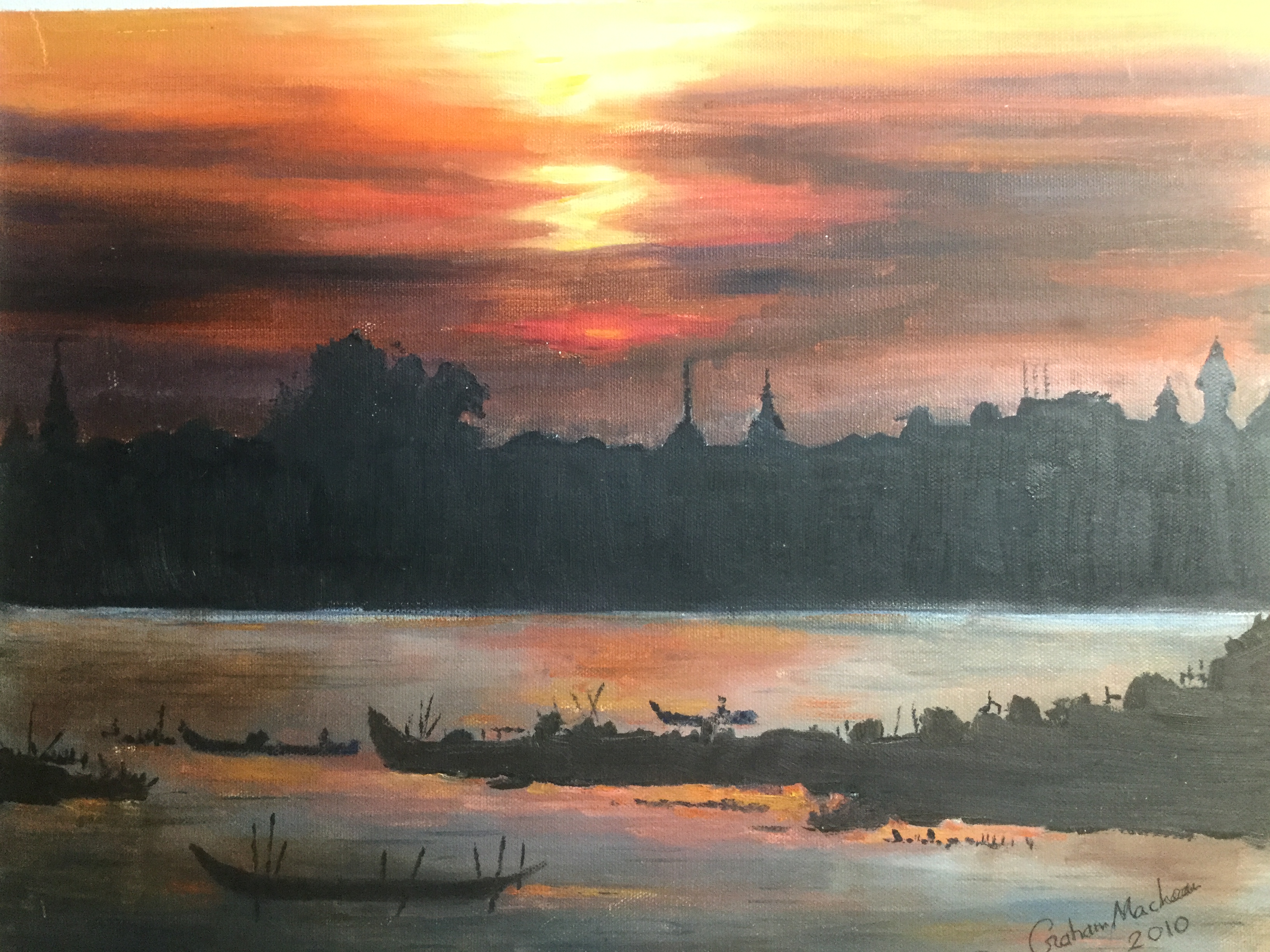 The Mekong River At Phnom Penh , Cambodia Oil painting. Just one of Graham MacLean’s fantastic artworks. Look at that light! Image kindly supplied by Graham MacLean