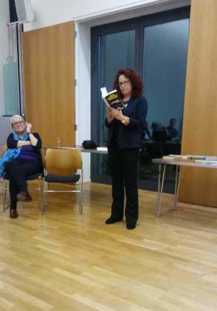 Debz Hobbs-Wyatt reads an extract from her novel – image by Allison Symes-1