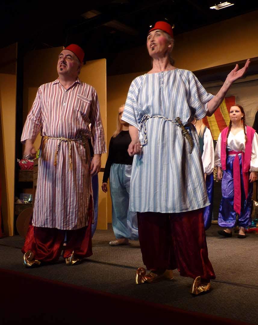 Mustapha Pee and Mustapha Dribble, the former played by Wayne in dress rehearsal here