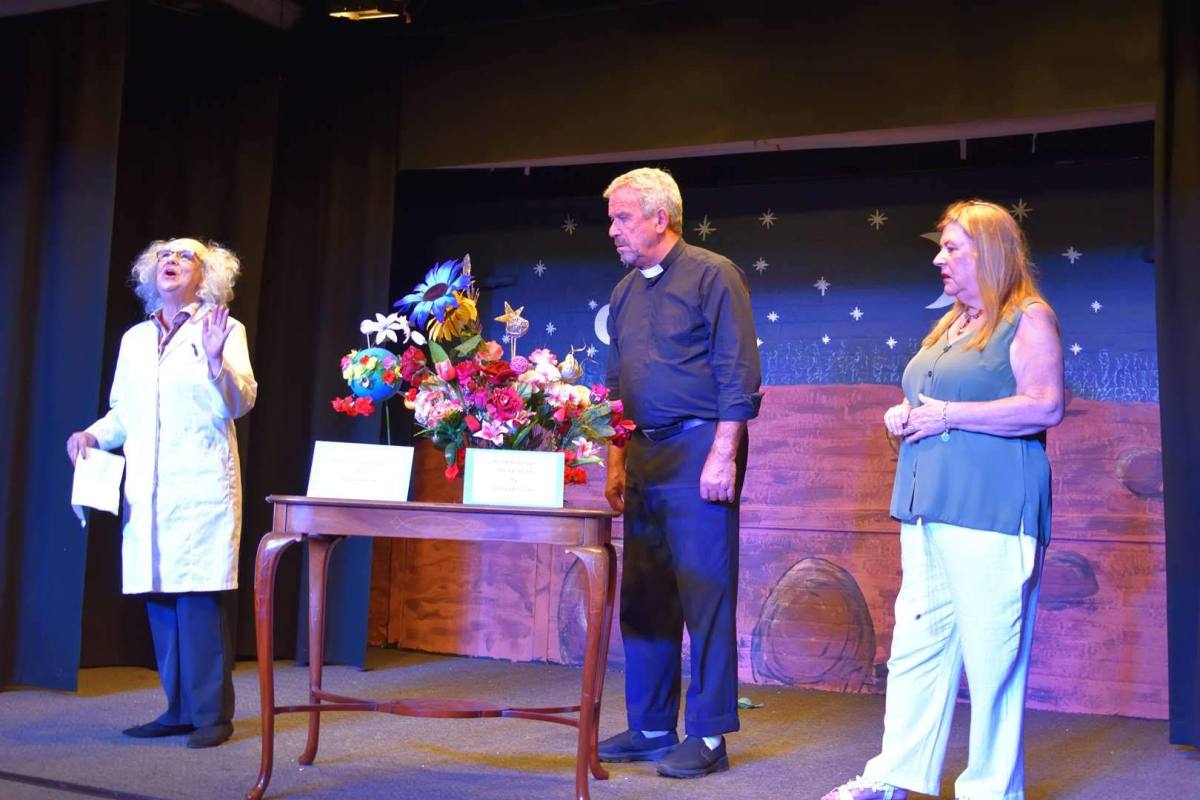 Naturally during the play the Farndale Avenue people give out their prizes for the flower arranging, their play just has to wait