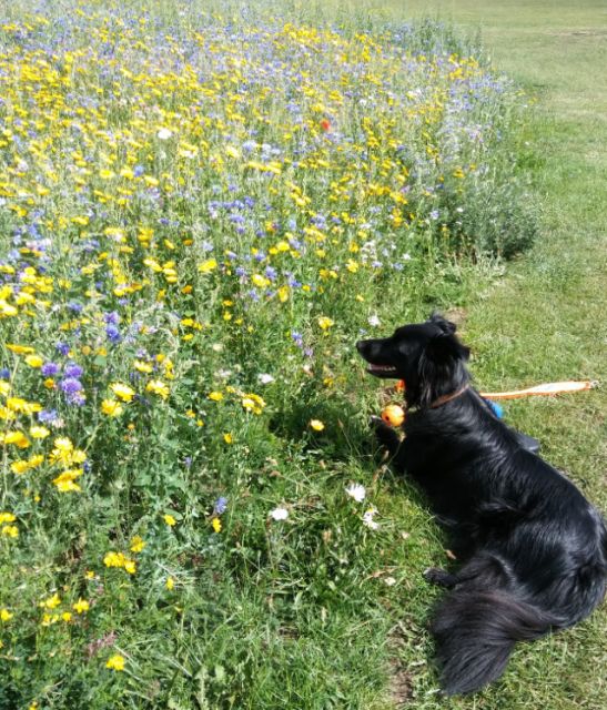Someone else doesn’t mind taking a breather by the flowers!