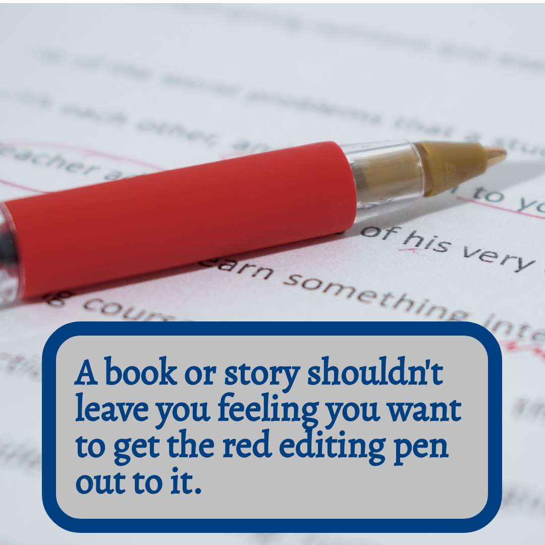 AE – A book or story shouldn’t make you want to get the red pen out to it