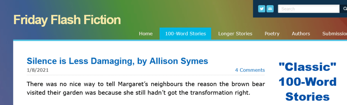 Allison Symes shares her Facebook author page blogs, her website posts and Chandler's Ford Today magazine articles with links. She also blogs about her writing journey and shares thoughts and hints on flash fiction.