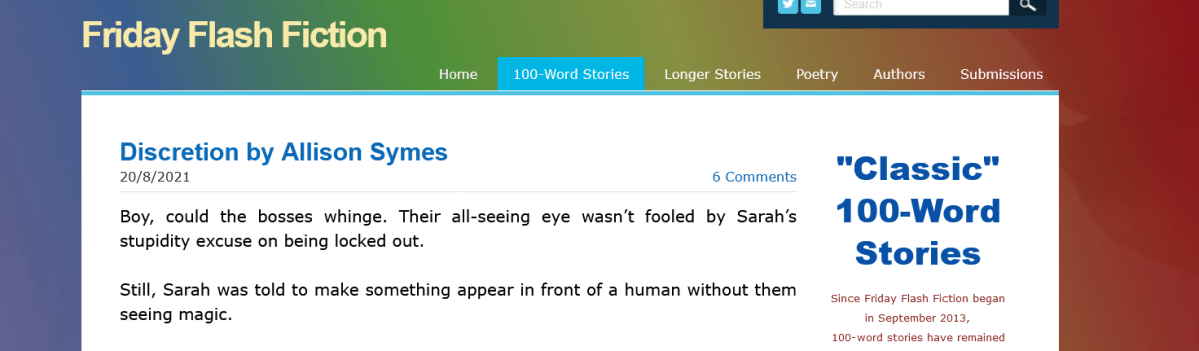 Allison Symes shares her Facebook author page blogs, her website posts and Chandler's Ford Today magazine articles with links. She also blogs about her writing journey and shares thoughts and hints on flash fiction.