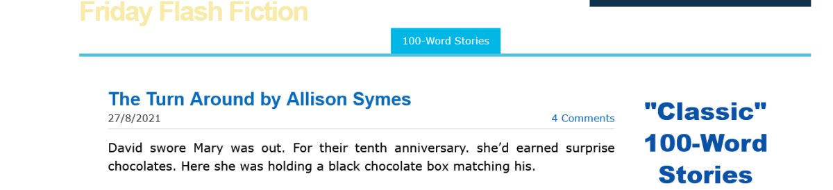 Allison Symes shares her Facebook author page blogs, her website posts and Chandler's Ford Today magazine articles with links. She also blogs about her writing journey and shares thoughts and hints on flash fiction.