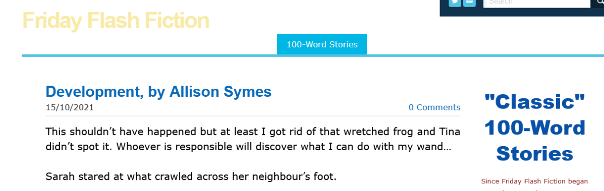 Allison Symes shares her Facebook author page blogs, her website posts and Chandler's Ford Today magazine articles with links. She also blogs about her writing journey and shares thoughts and hints on flash fiction.