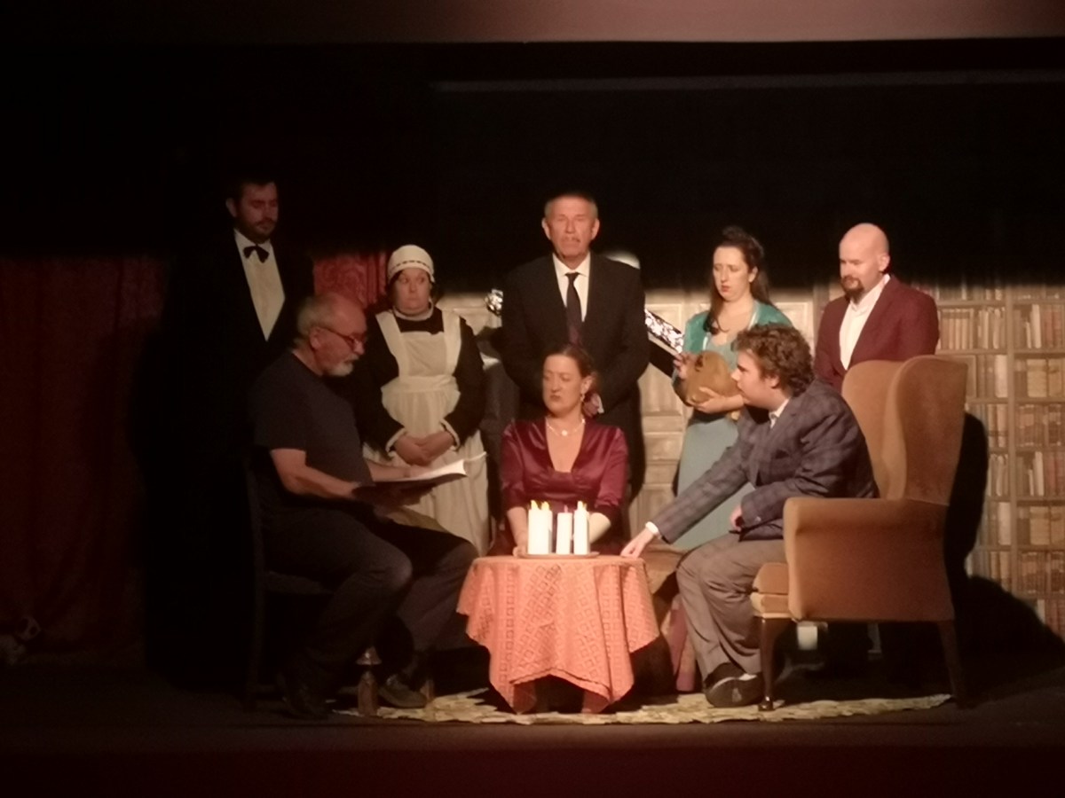Rehearsal scene for when the ghosts try to get through to the medium who is not shown here