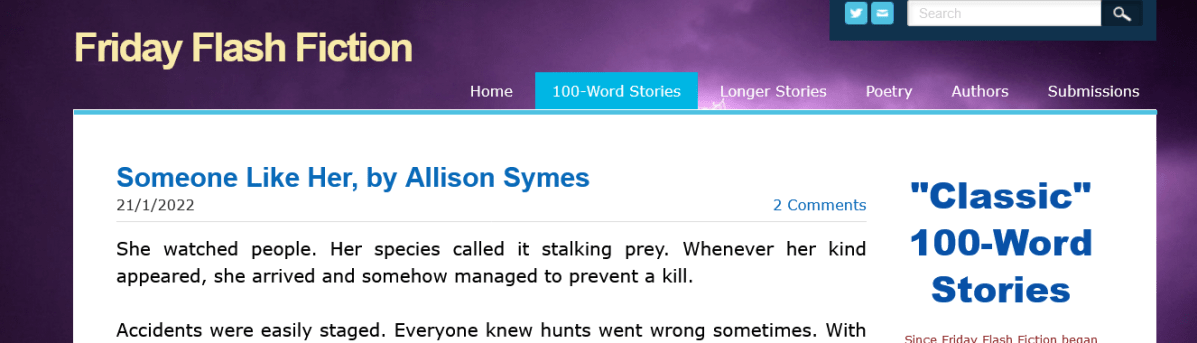 Allison Symes shares her Facebook author page blogs, her website posts and Chandler's Ford Today magazine articles with links. She also blogs about her writing journey and shares thoughts and hints on flash fiction.