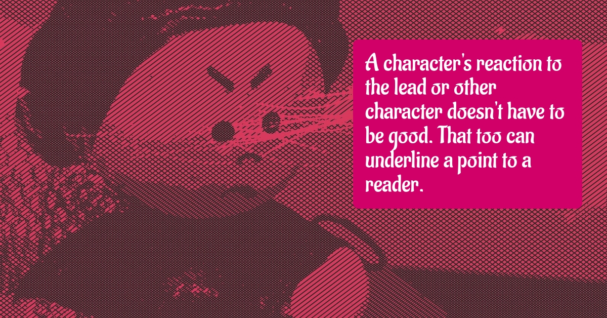 A character’s reaction to another does not have to be a good one – that too can underline something