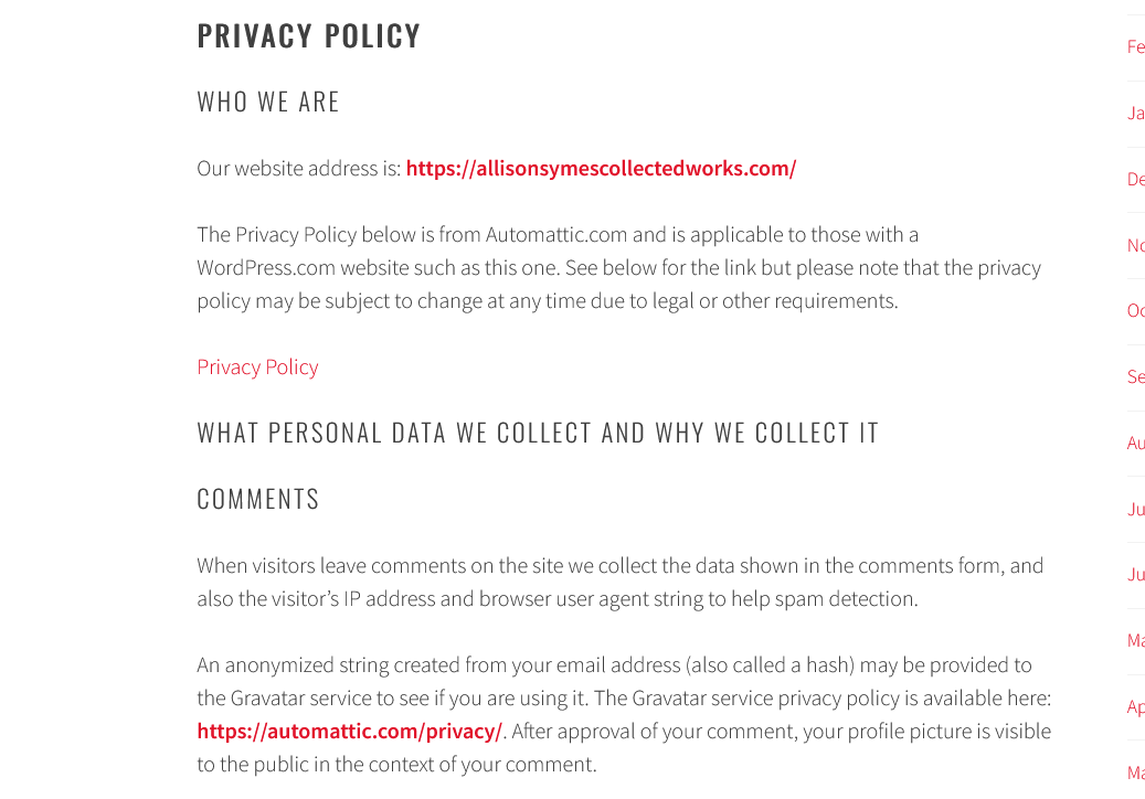Part of my Privacy Policy – this is GPDR compliant and there is a link to the whole thing