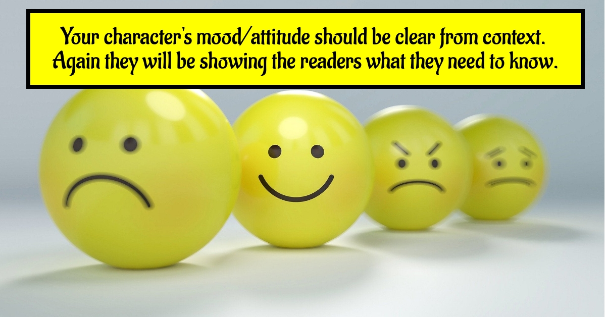 A character’s mood or attitude should be clear from context – again showing