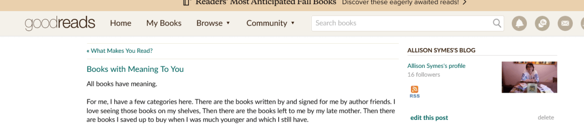 Allison Symes shares her Facebook author page blogs, her website posts and Chandler's Ford Today magazine articles with links. She also blogs about her writing journey and shares thoughts and hints on flash fiction.