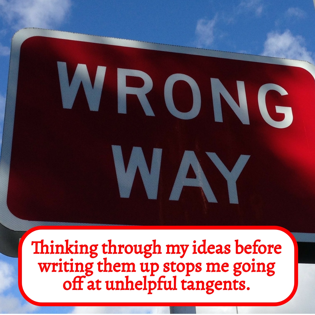 Thinking through my ideas before writing them up stops me going off at tangents and helps with the editing process too