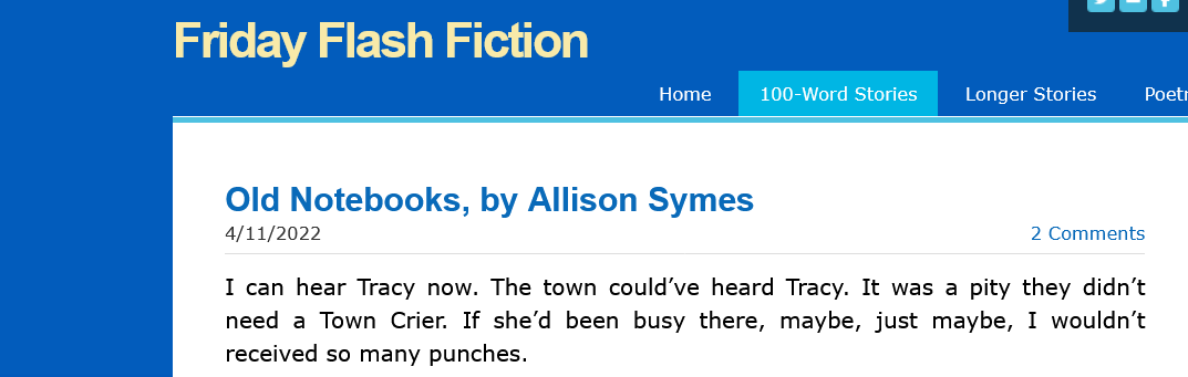 Allison Symes shares her Facebook author page blogs, her website posts and Chandler's Ford Today magazine articles with links. She also blogs about her writing journey and shares thoughts and hints on flash fiction.
