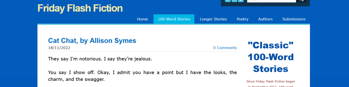 Allison Symes shares her Facebook author page blogs, her website posts and Chandler's Ford Today magazine articles with links. She also blogs about her writing journey and shares thoughts and hints on flash fiction.