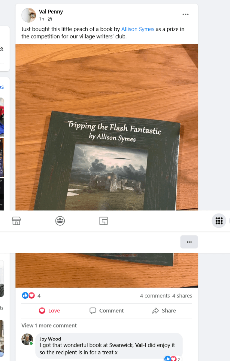 Allison Symes shares her Facebook author page blogs, her website posts and Chandler's Ford Today magazine articles with links. She also blogs about her writing journey and shares thoughts and hints on flash fiction.