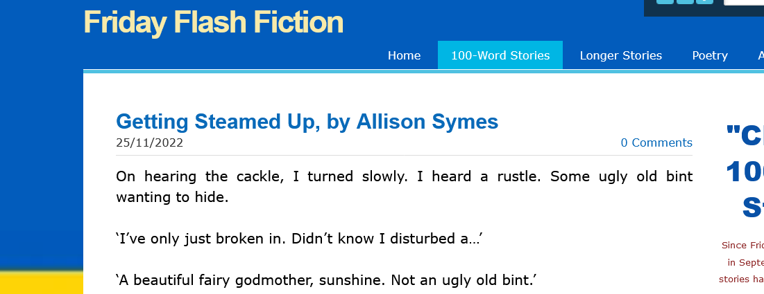 Allison Symes shares her Facebook author page blogs, her website posts and Chandler's Ford Today magazine articles with links. She also blogs about her writing journey and shares thoughts and hints on flash fiction.
