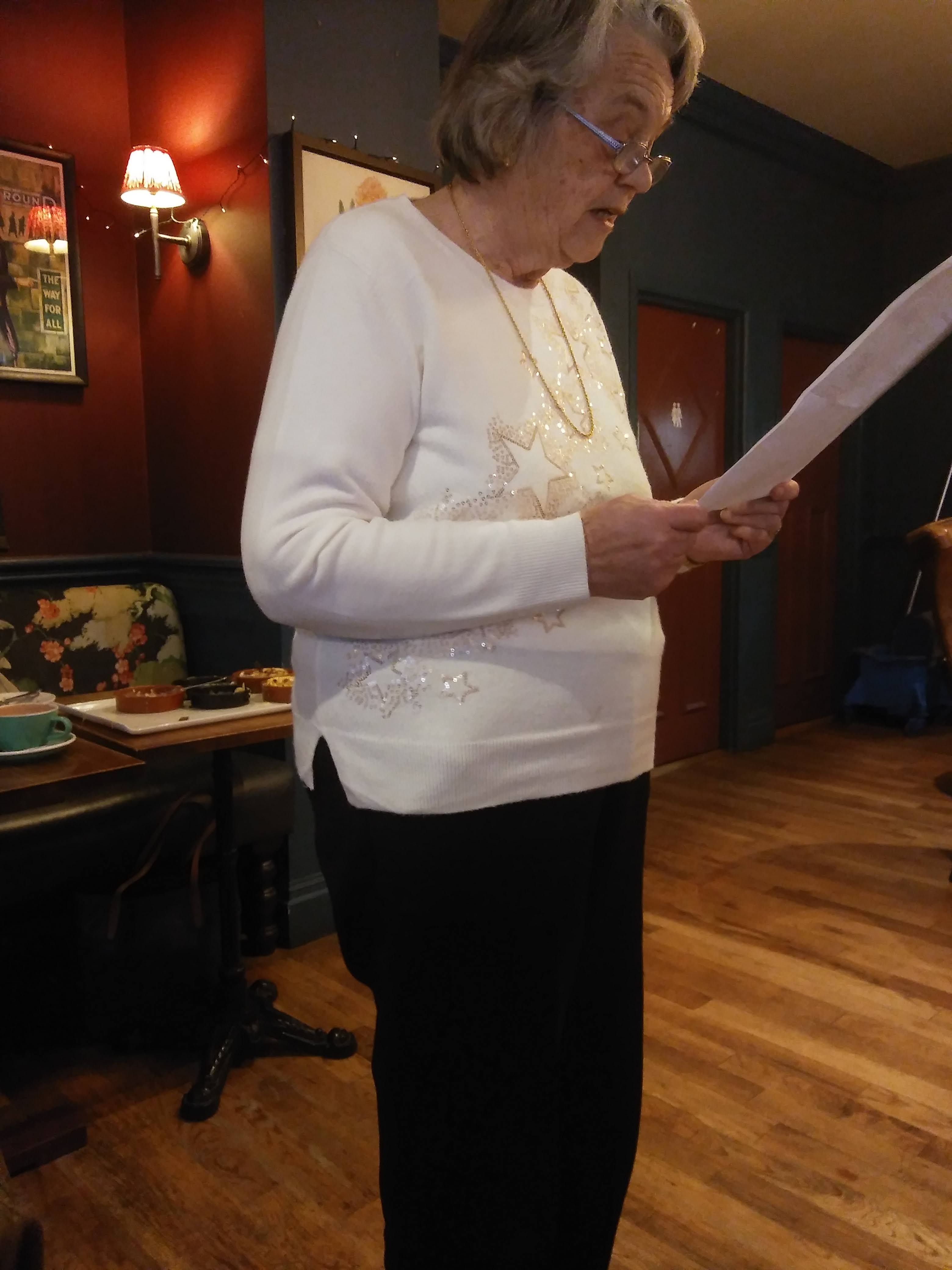 June Webber reading at the BHP event Previous Next Published December 16, 2022 at 3120 × 4160 in Bridge House Celebration Event