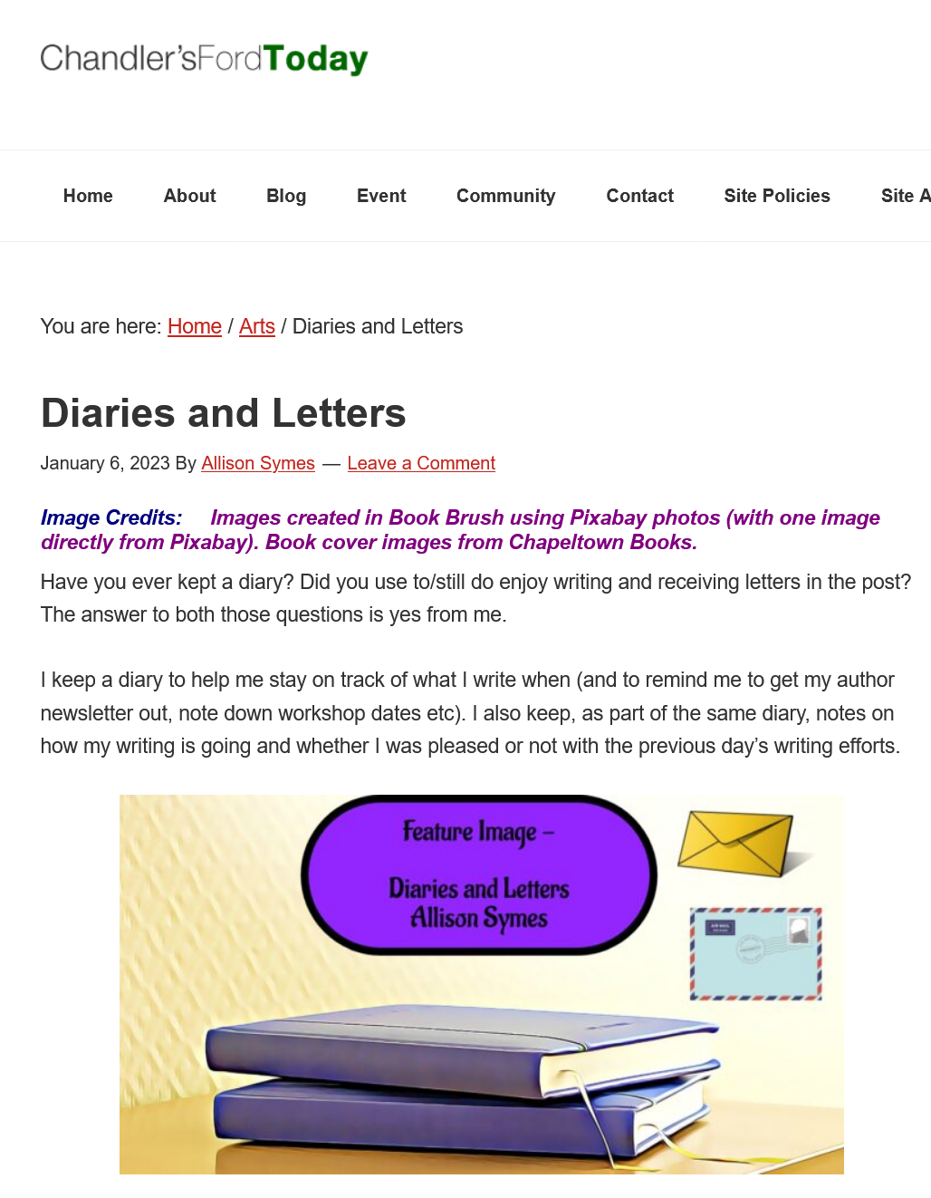 Allison Symes shares her Facebook author page blogs, her website posts and Chandler's Ford Today magazine articles with links. She also blogs about her writing journey and shares thoughts and hints on flash fiction.
