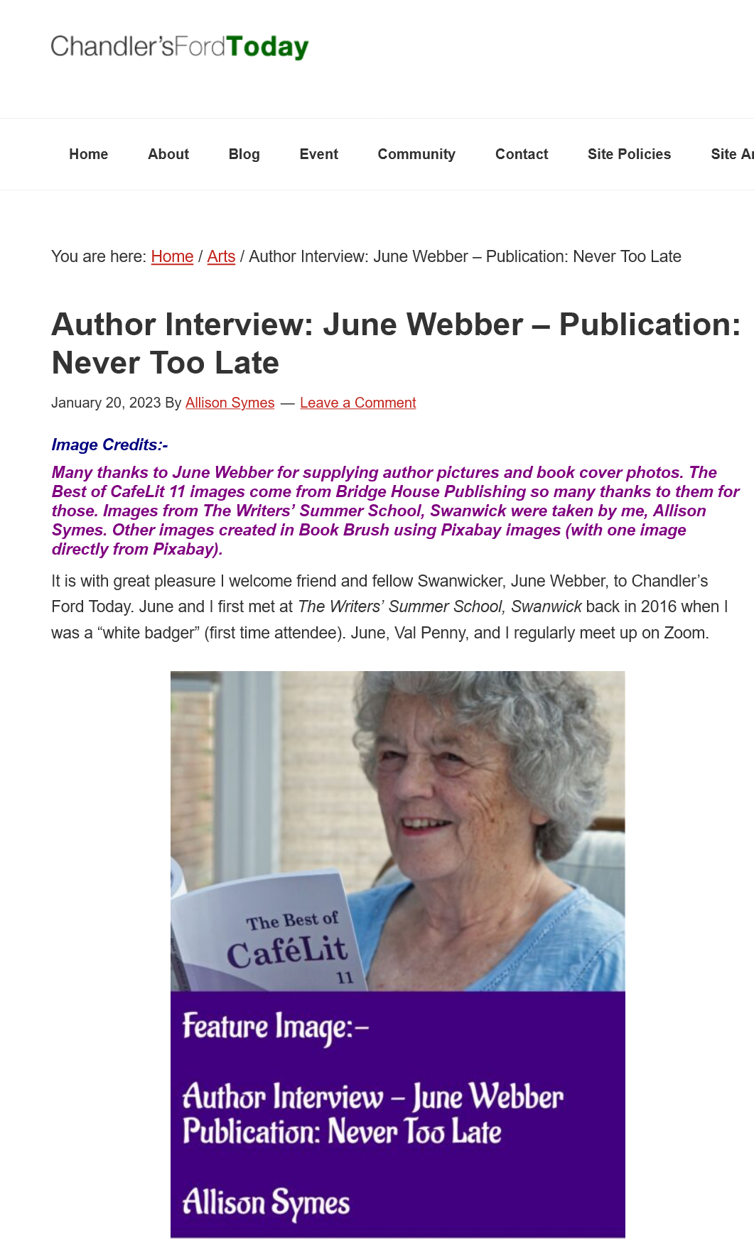 Screenshot 2023-01-20 at 09-23-14 Author Interview June Webber – Publication Never Too Late – Chandler’s Ford Today