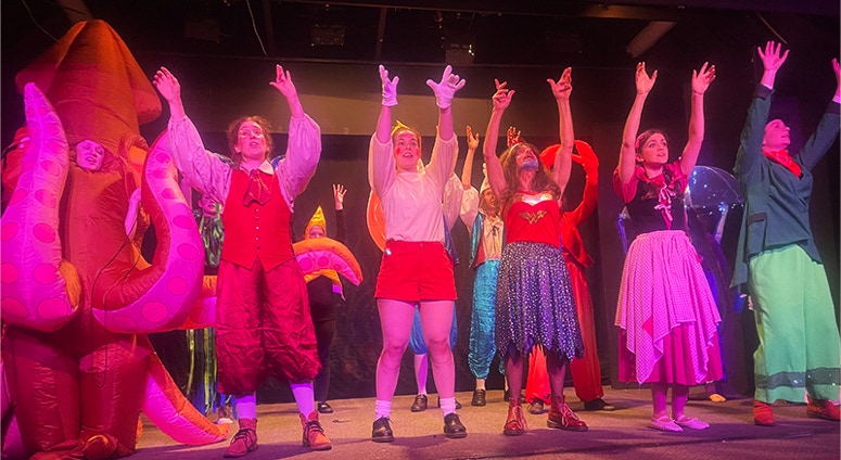 Pinocchio and family and friends escape the whale by tickling it from the inside