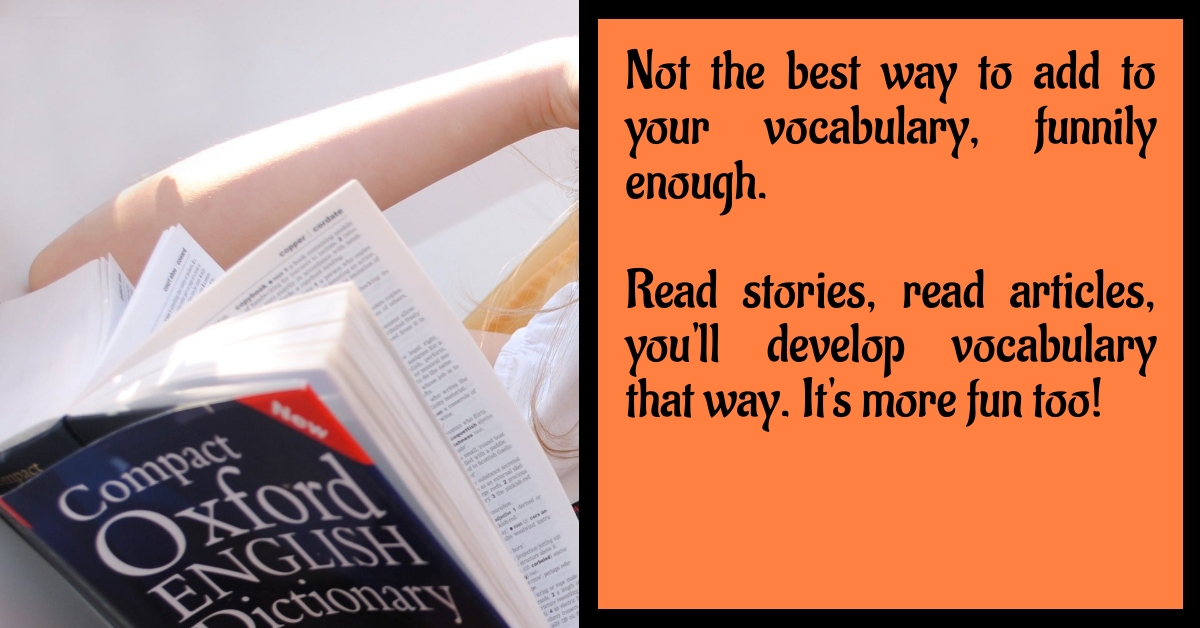 Not the best way to add to your vocabulary – you are better off reading books, stories, anything almost