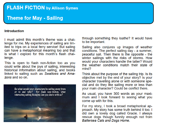 Allison Symes shares her Facebook author page blogs, her website posts and Chandler's Ford Today magazine articles with links. She also blogs about her writing journey and shares thoughts and hints on flash fiction.