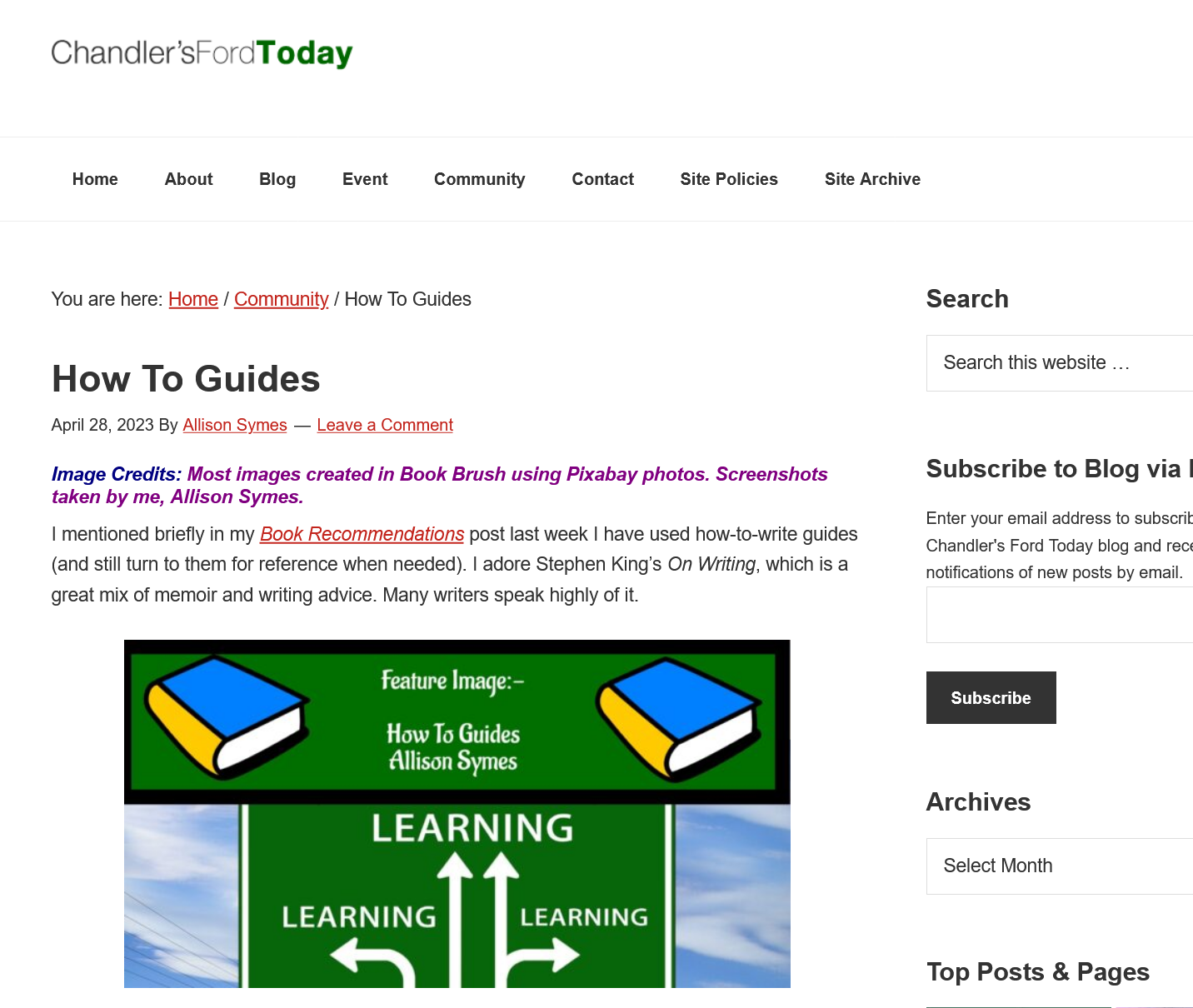 Allison Symes shares her Facebook author page blogs, her website posts and Chandler's Ford Today magazine articles with links. She also blogs about her writing journey and shares thoughts and hints on flash fiction.