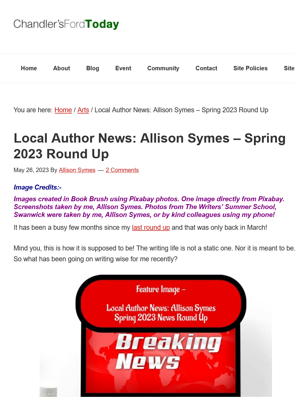 Screenshot 2023-05-26 at 09-57-34 Local Author News Allison Symes – Spring 2023 Round Up – Chandler’s Ford Today