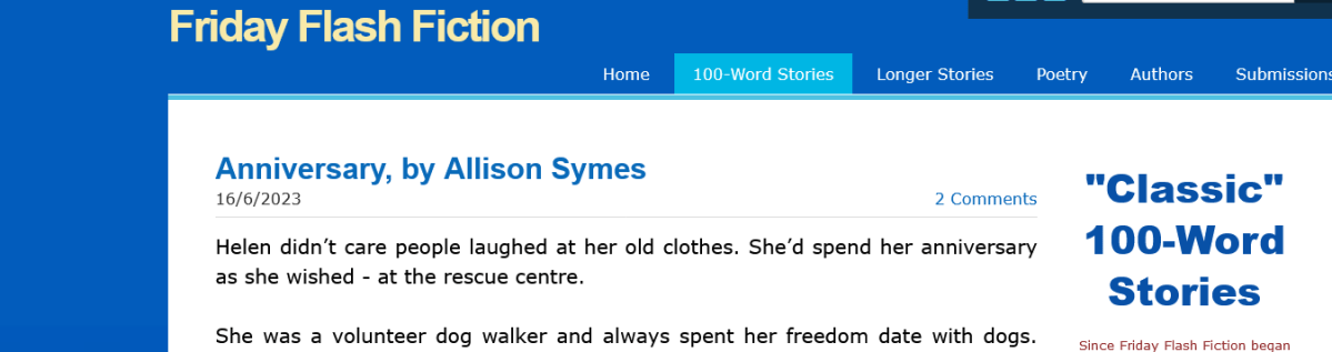 Allison Symes shares her Facebook author page blogs, her website posts and Chandler's Ford Today magazine articles with links. She also blogs about her writing journey and shares thoughts and hints on flash fiction.