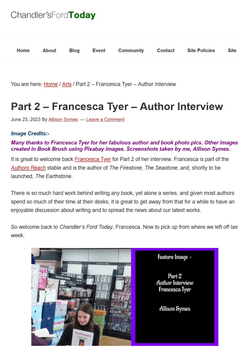Screenshot 2023-06-23 at 09-51-14 Part 2 – Francesca Tyer – Author Interview – Chandler’s Ford Today