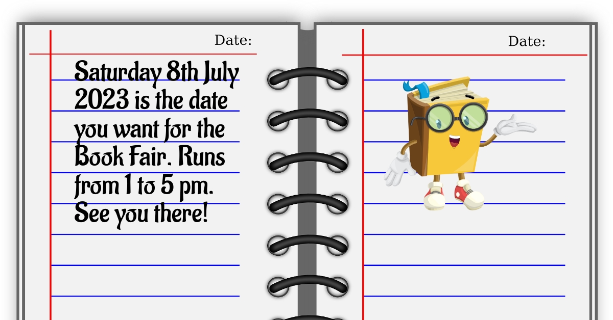 Save the date – Saturday 8th July 2023 Previous Next Published July 4, 2023 at 1200 × 628 in Book Fair and Cake Story