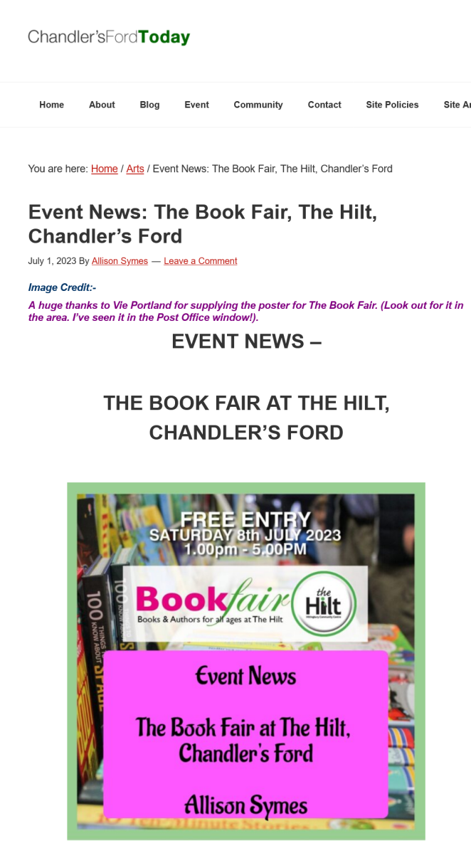 Screenshot 2023-07-01 at 10-26-30 Event News The Book Fair The Hilt Chandler’s Ford – Chandler’s Ford Today