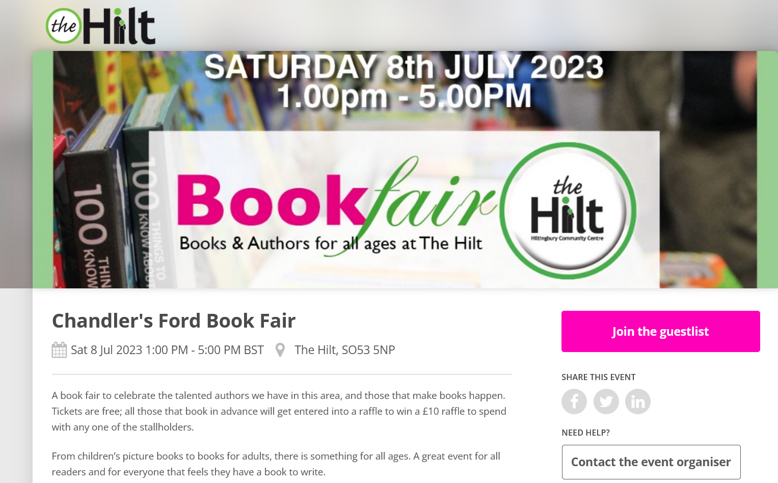 Screenshot 2023-06-13 at 20-02-23 Join the guestlist – Chandler’s Ford Book Fair – The Hilt
