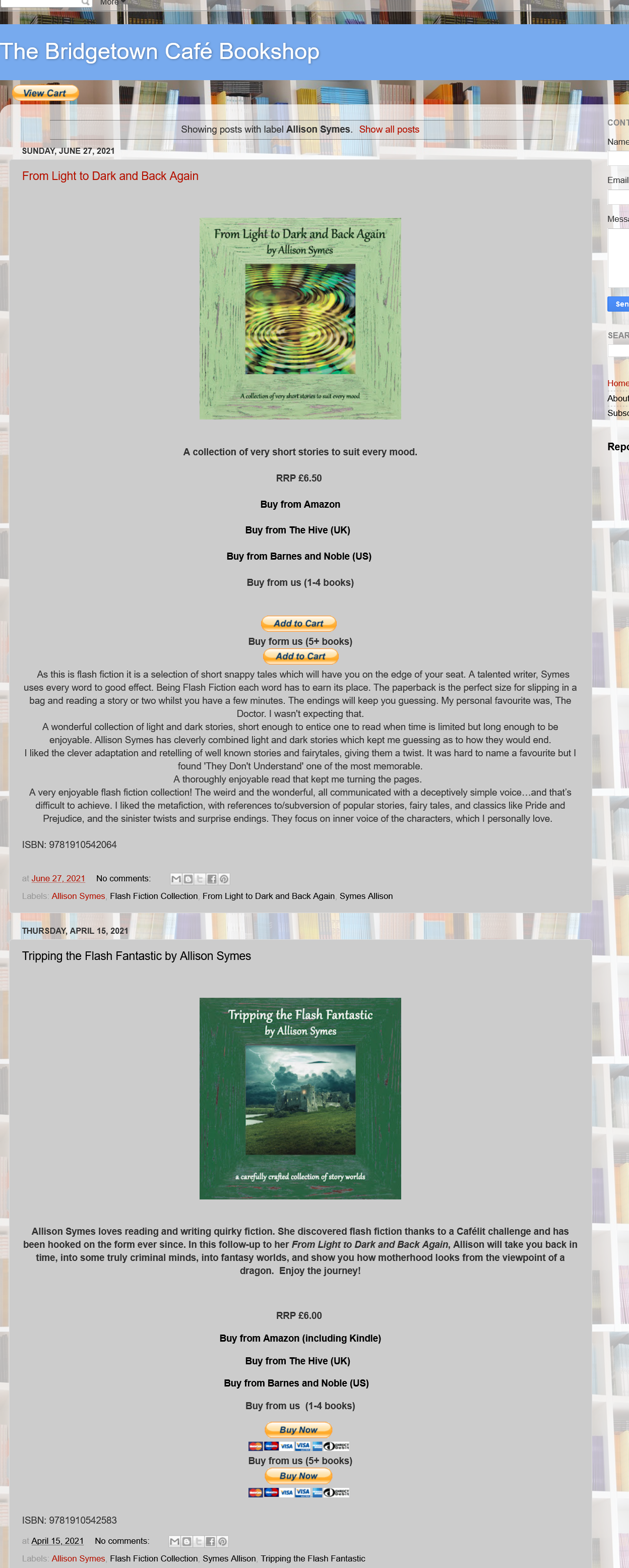 Allison Symes shares her Facebook author page blogs, her website posts and Chandler's Ford Today magazine articles with links. She also blogs about her writing journey and shares thoughts and hints on flash fiction.