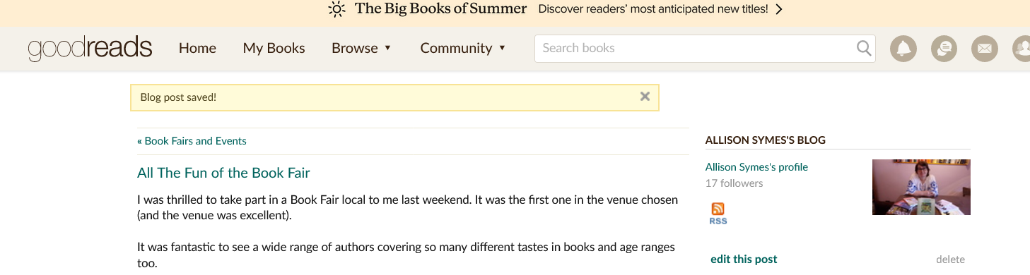 Allison Symes shares her Facebook author page blogs, her website posts and Chandler's Ford Today magazine articles with links. She also blogs about her writing journey and shares thoughts and hints on flash fiction.