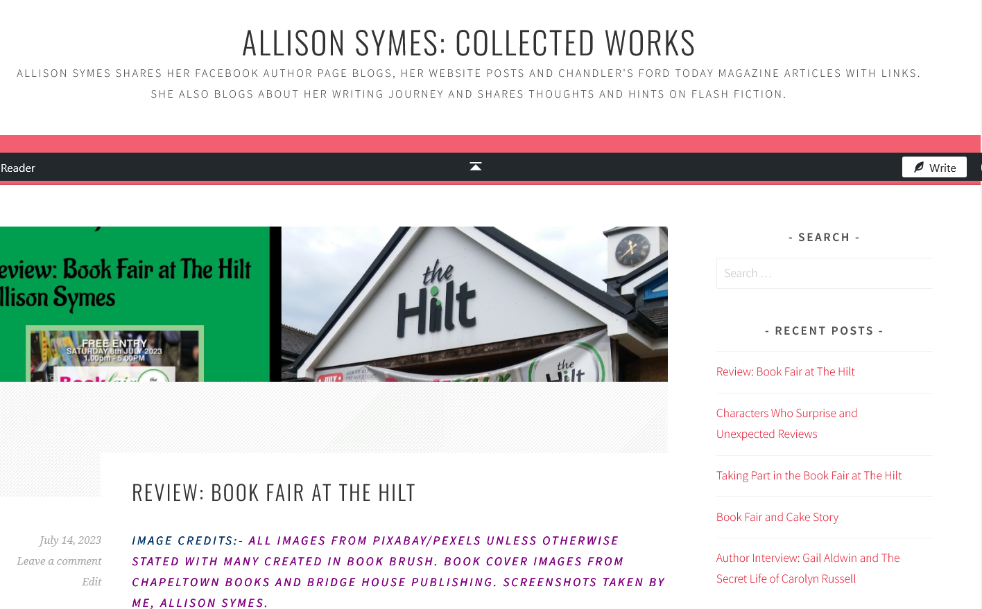 Allison Symes shares her Facebook author page blogs, her website posts and Chandler's Ford Today magazine articles with links. She also blogs about her writing journey and shares thoughts and hints on flash fiction.