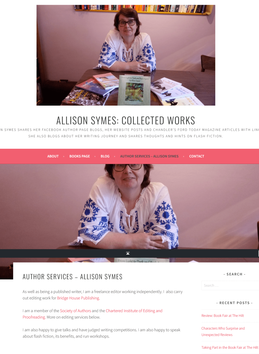Allison Symes shares her Facebook author page blogs, her website posts and Chandler's Ford Today magazine articles with links. She also blogs about her writing journey and shares thoughts and hints on flash fiction.