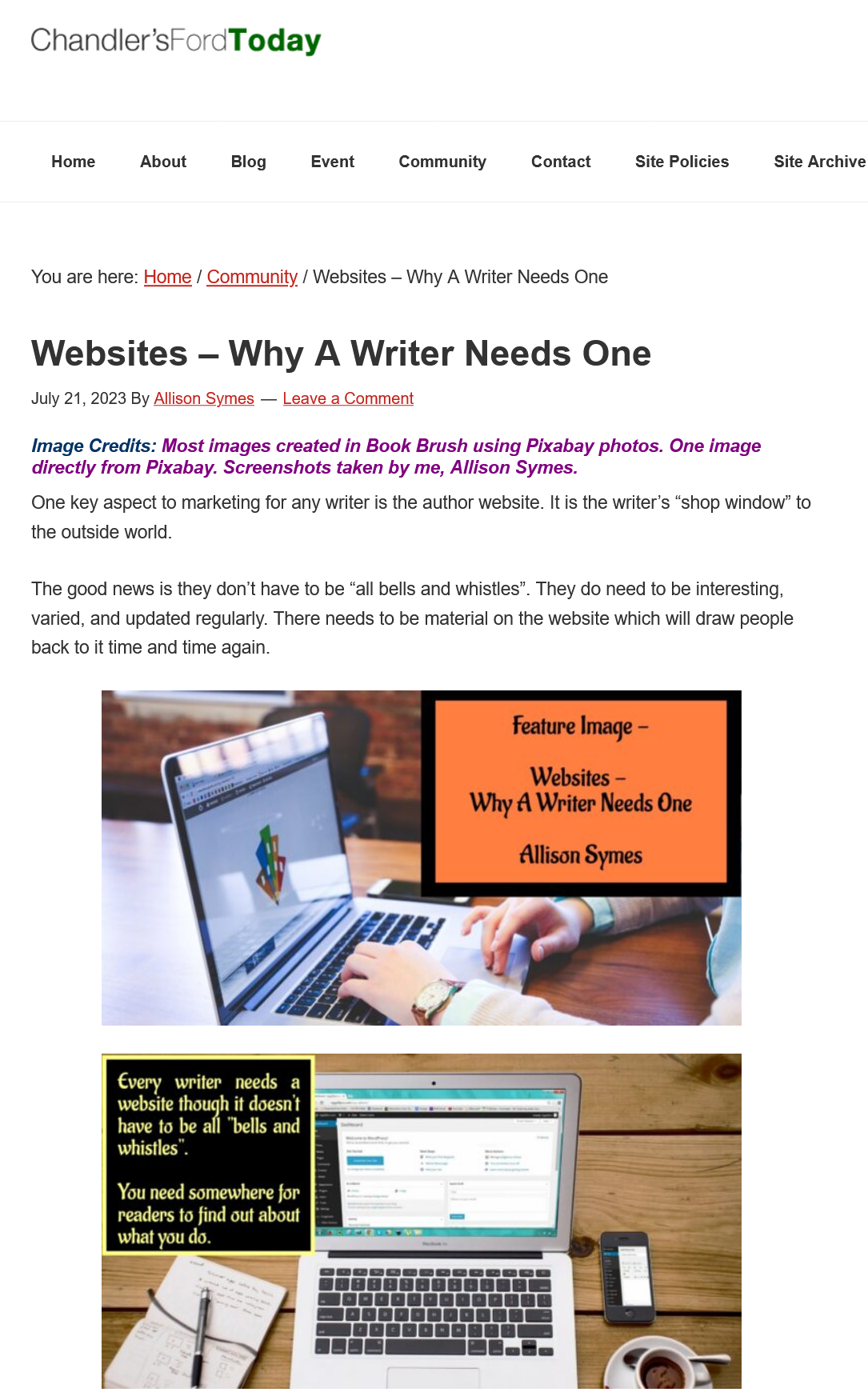 Screenshot 2023-07-21 at 09-51-39 Websites – Why A Writer Needs One – Chandler’s Ford Today