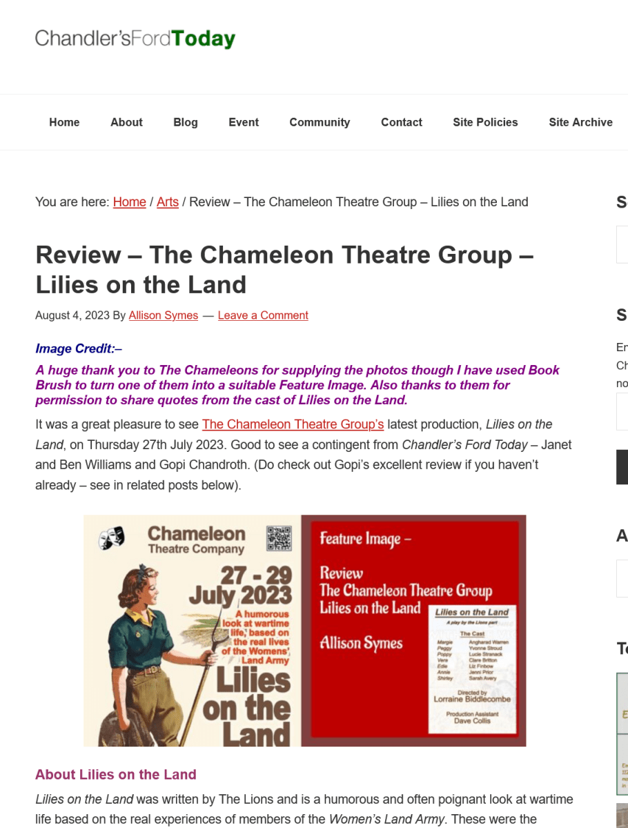 Screenshot 2023-08-04 at 09-59-52 Review – The Chameleon Theatre Group – Lilies on the Land – Chandler’s Ford Today