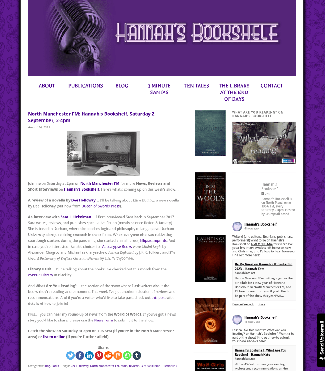 Screenshot 2023-08-31 at 19-56-24 North Manchester FM Hannah’s Bookshelf Saturday 2 September 2-4pm – Hannah Kate