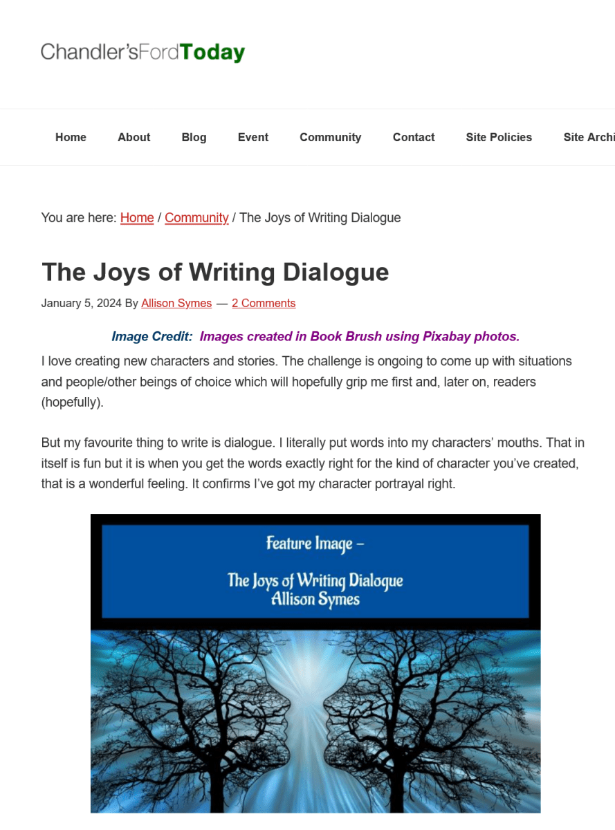 Screenshot 2024-01-05 at 09-57-01 The Joys of Writing Dialogue – Chandler’s Ford Today