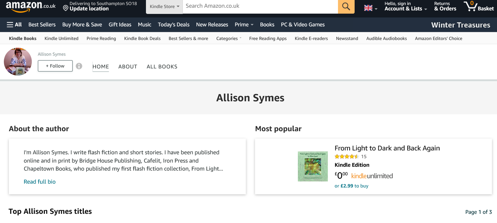 Allison Symes shares her Facebook author page blogs, her website posts and Chandler's Ford Today magazine articles with links. She also blogs about her writing journey and shares thoughts and hints on flash fiction.