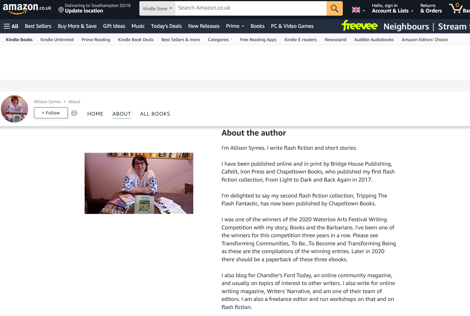 Allison Symes shares her Facebook author page blogs, her website posts and Chandler's Ford Today magazine articles with links. She also blogs about her writing journey and shares thoughts and hints on flash fiction.