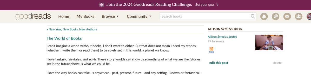 Allison Symes shares her Facebook author page blogs, her website posts and Chandler's Ford Today magazine articles with links. She also blogs about her writing journey and shares thoughts and hints on flash fiction.