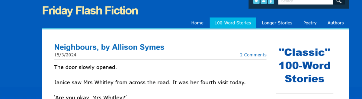 Allison Symes shares her Facebook author page blogs, her website posts and Chandler's Ford Today magazine articles with links. She also blogs about her writing journey and shares thoughts and hints on flash fiction.