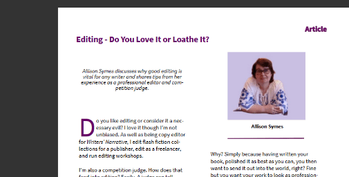 Allison Symes shares her Facebook author page blogs, her website posts and Chandler's Ford Today magazine articles with links. She also blogs about her writing journey and shares thoughts and hints on flash fiction.