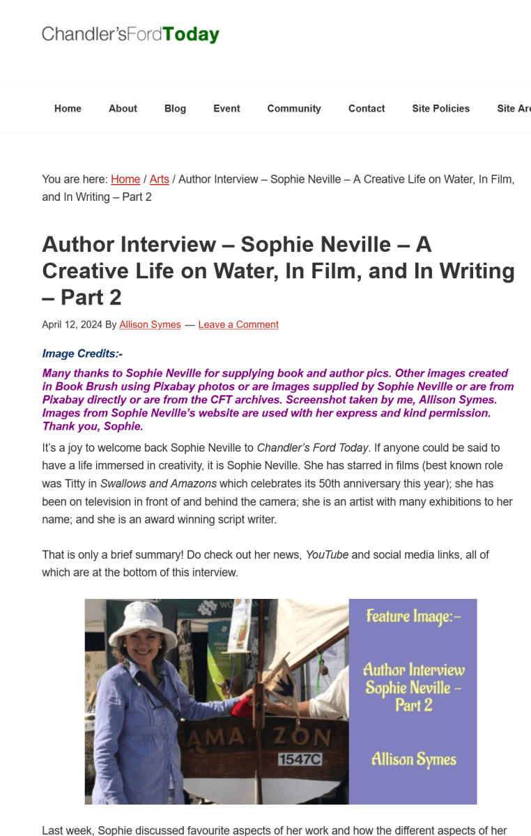 Screenshot 2024-04-12 at 10-05-42 Author Interview – Sophie Neville – A Creative Life on Water In Film and In Writing – Part 2 – Chandler’s Ford Today
