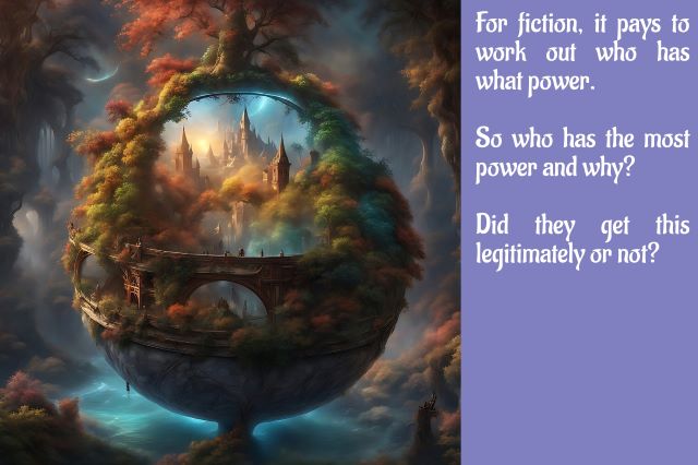 For fiction it pays to work out who has what power, who has the most, and why