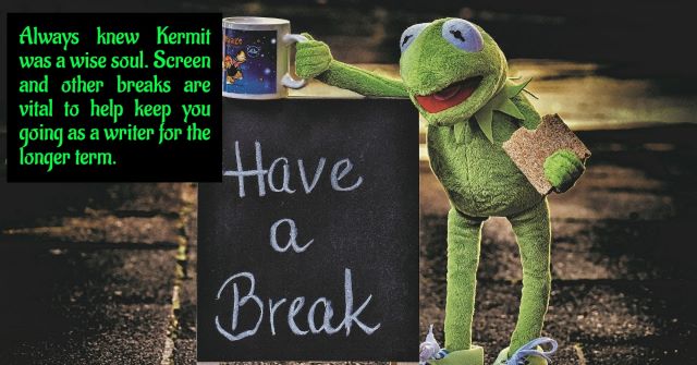 Screen and other breaks are vital to help keep you going as a writer for the longer term